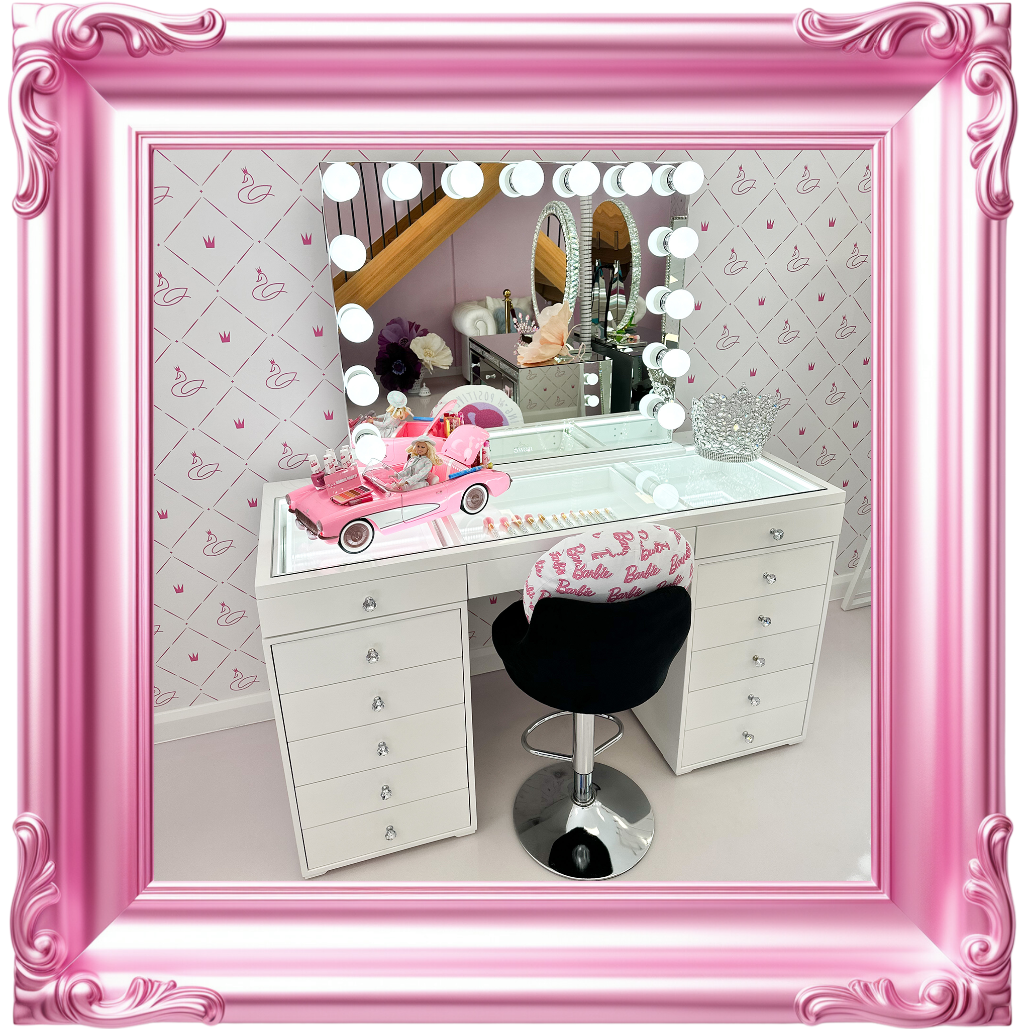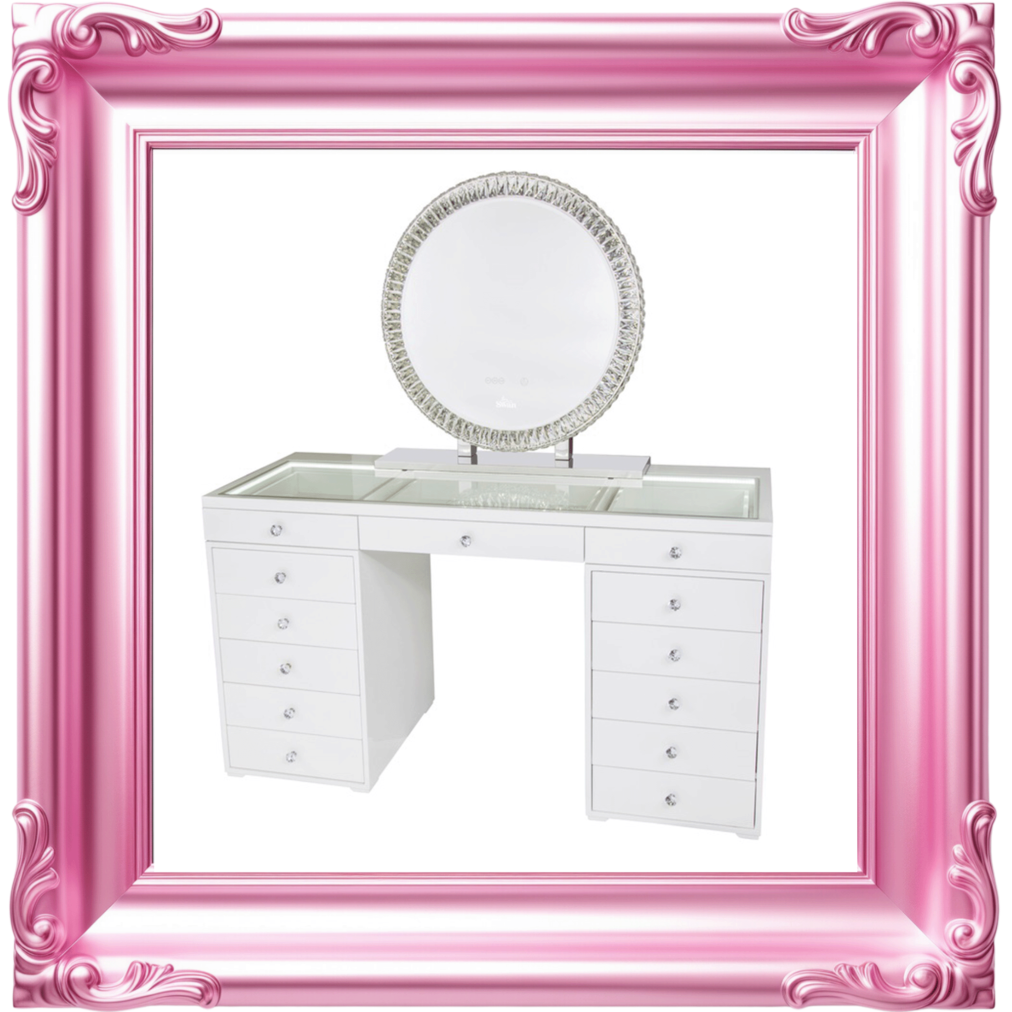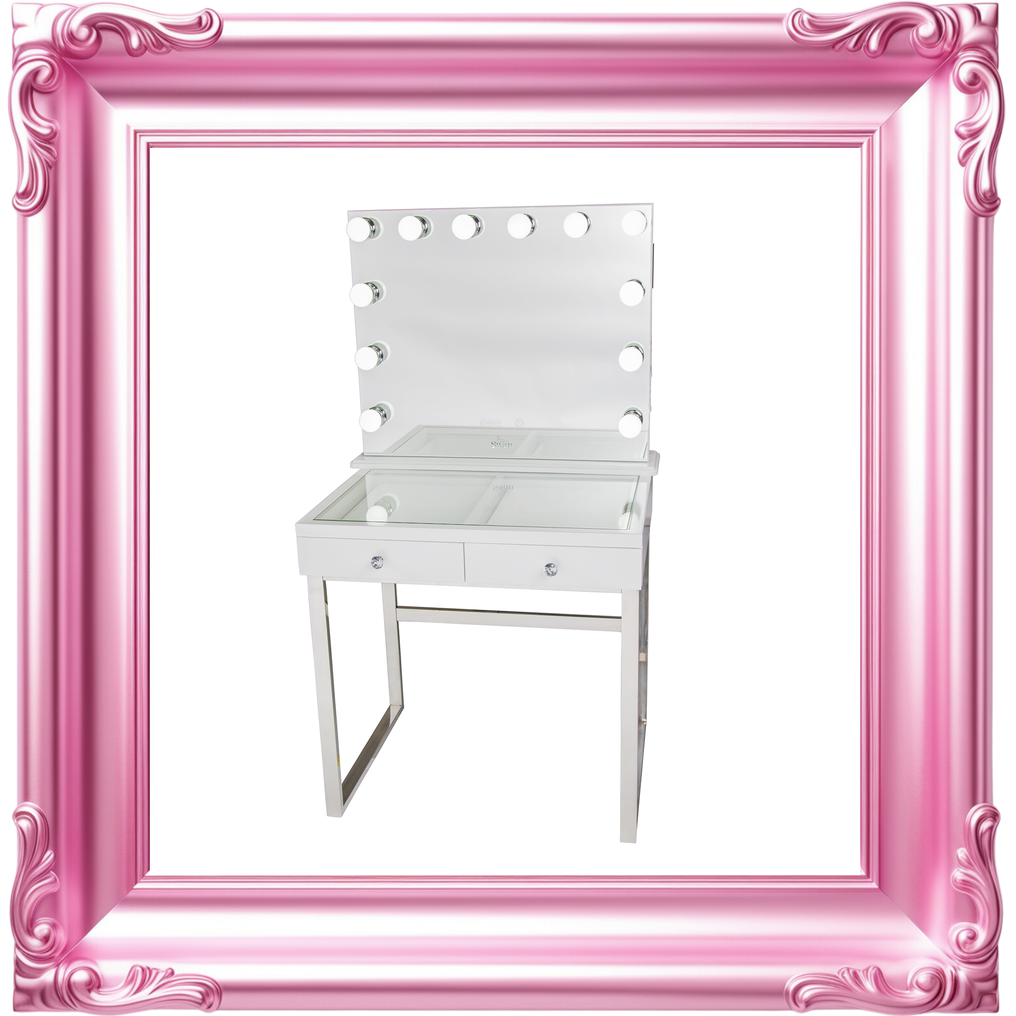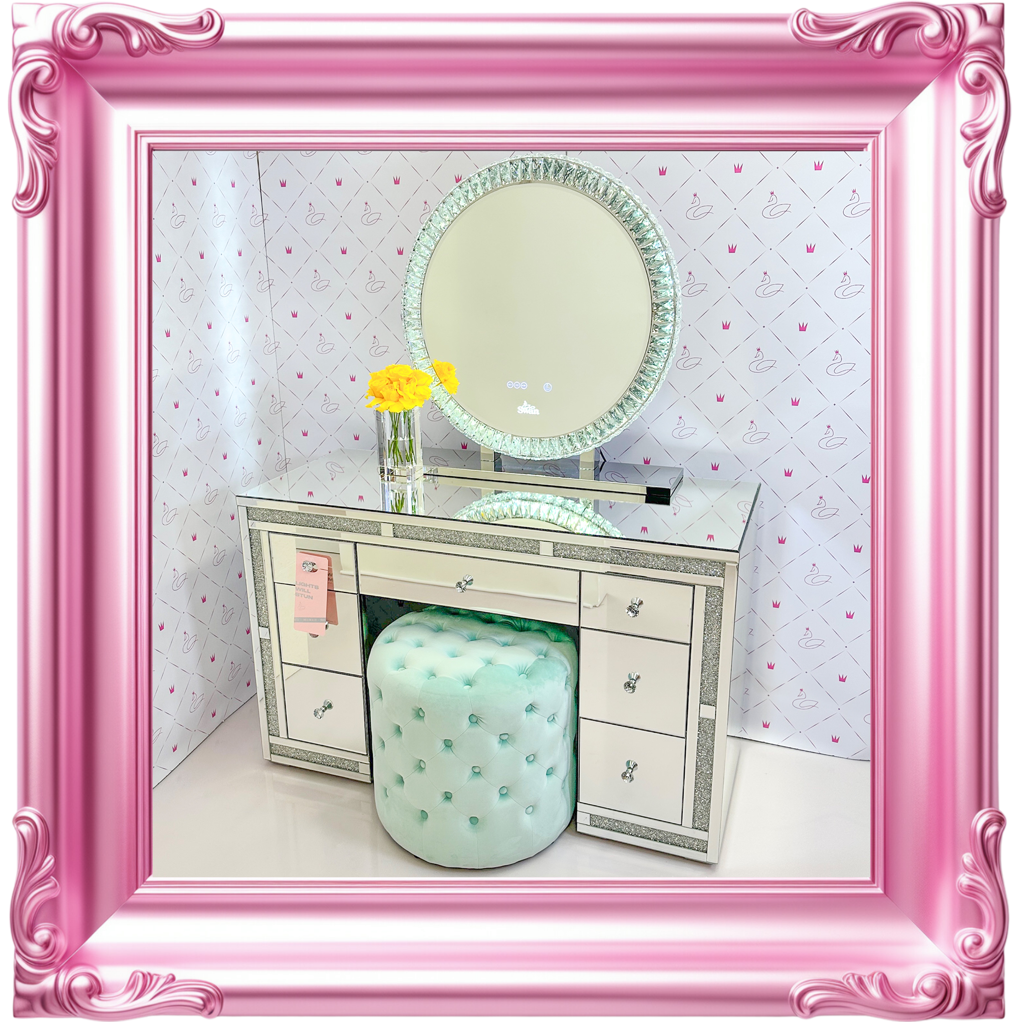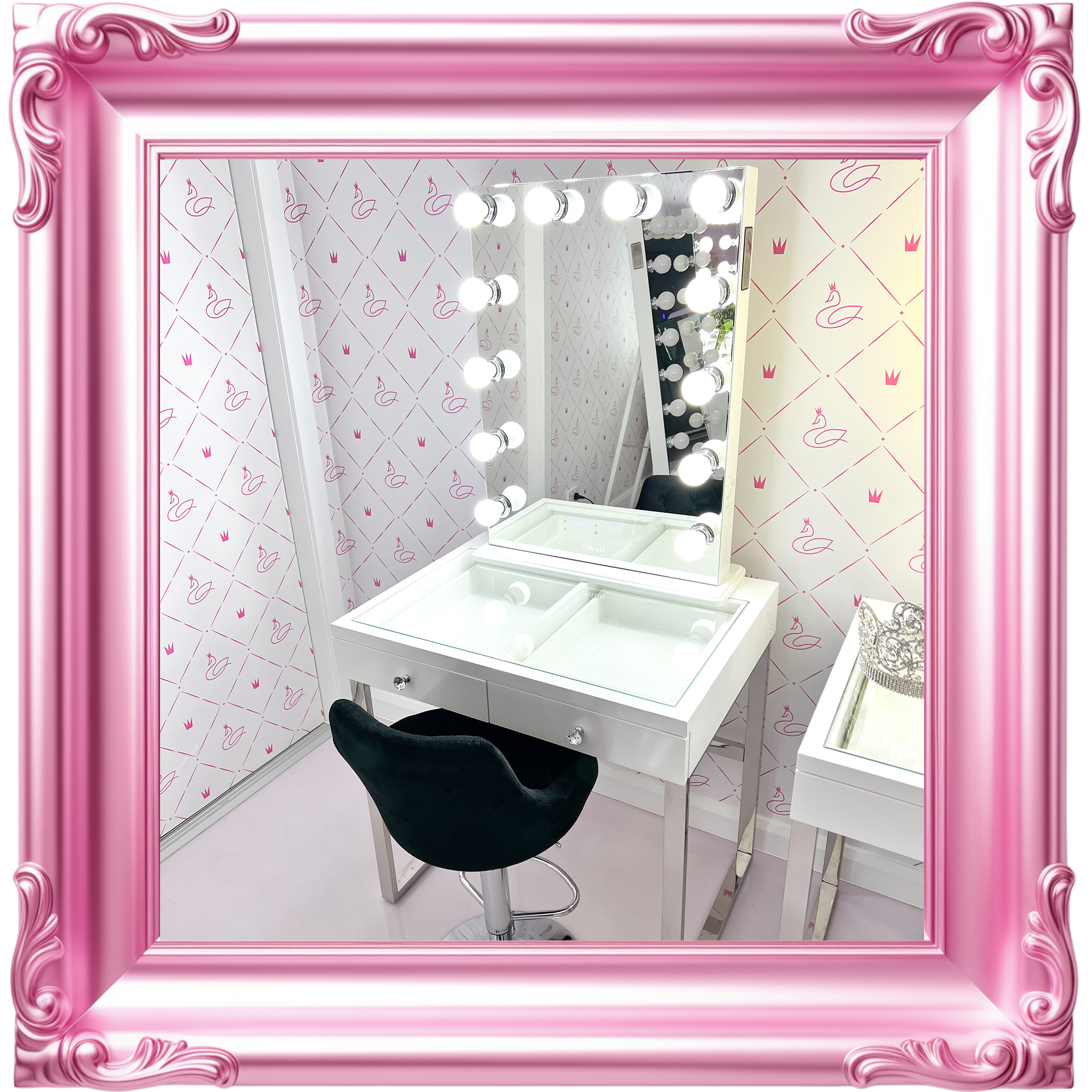 Our decadent mirrors and vanities are as solid and precious as you are. So, they are checked twice at Swan Beauty HQ before being chauffeured to you. We unpack every product in pristine white gloves, because every unveiling deserves to be on show.Β Β