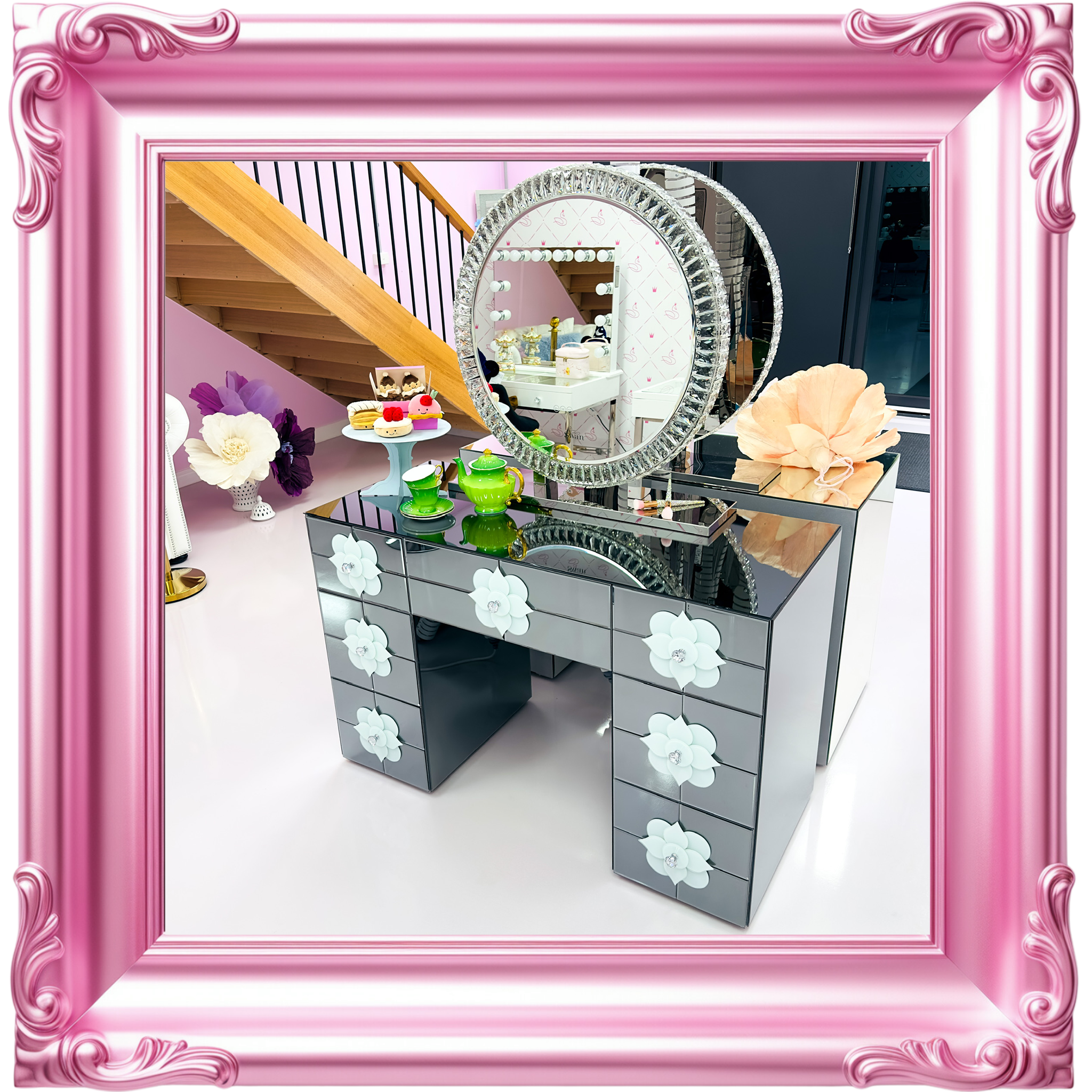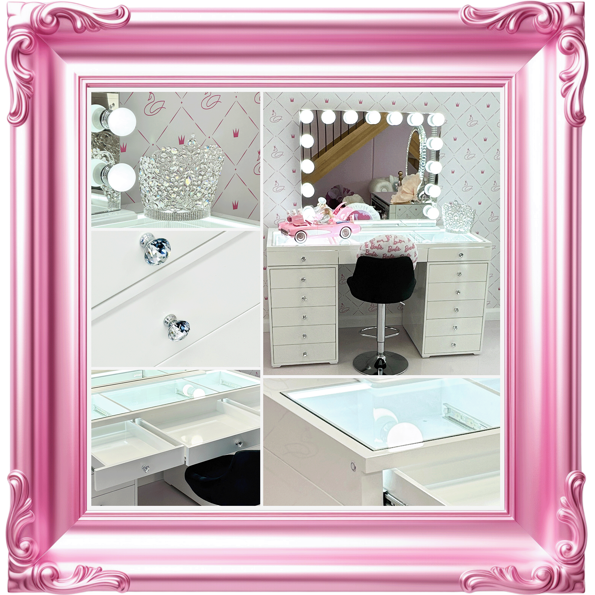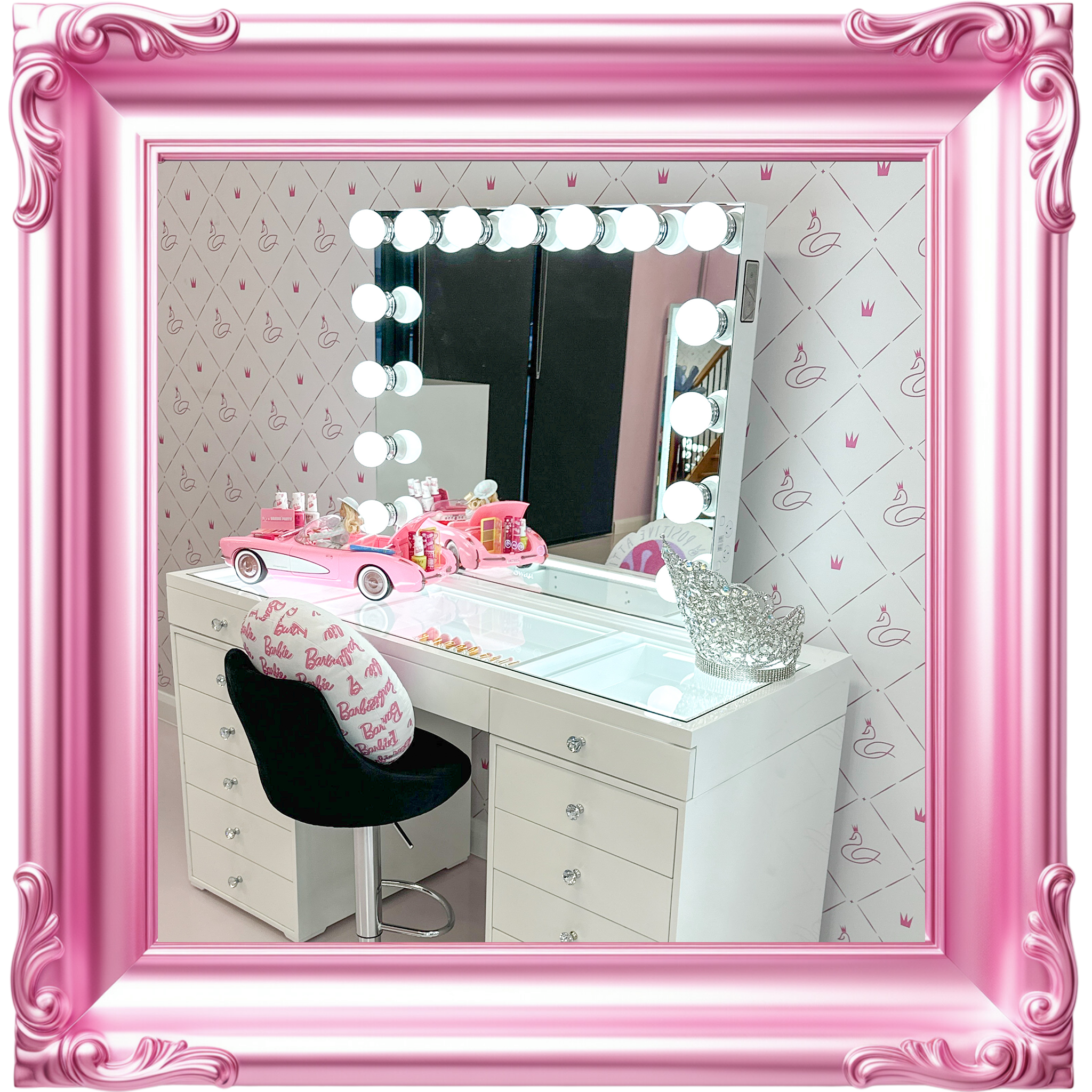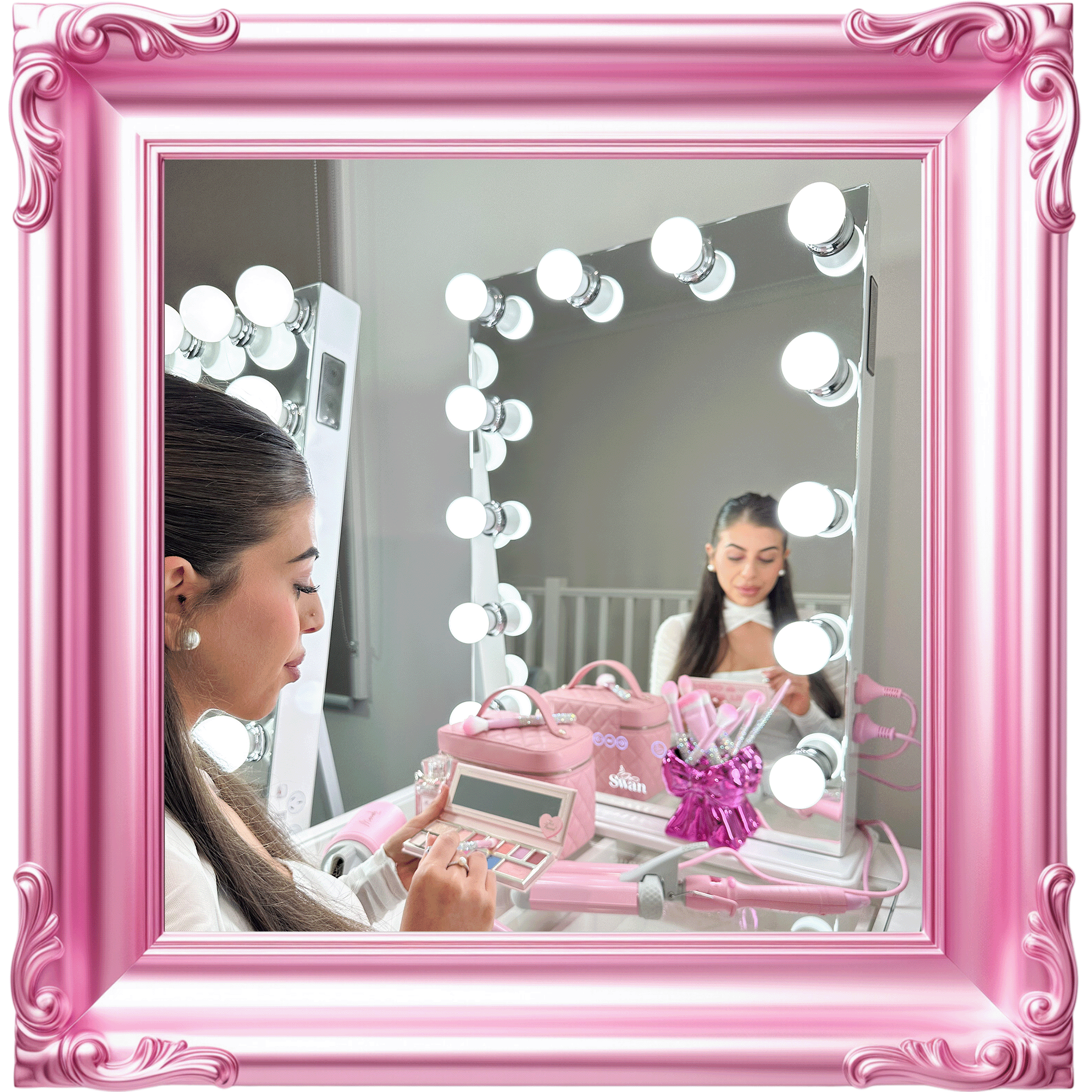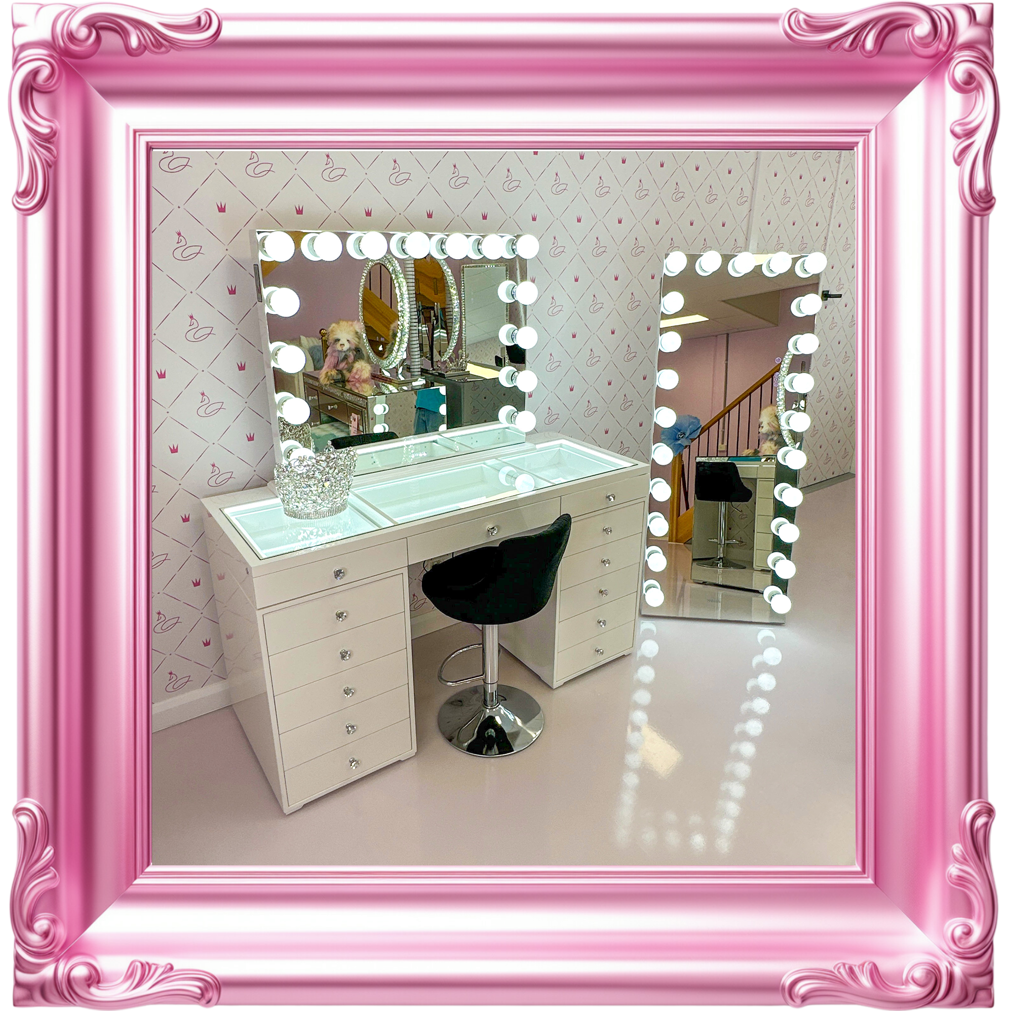 Our decadent mirrors and vanities are as solid and precious as you are. So, they are checked twice at Swan Beauty HQ before being chauffeured to you. We unpack every product in pristine white gloves, because every unveiling deserves to be on show.Β Β